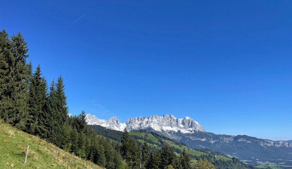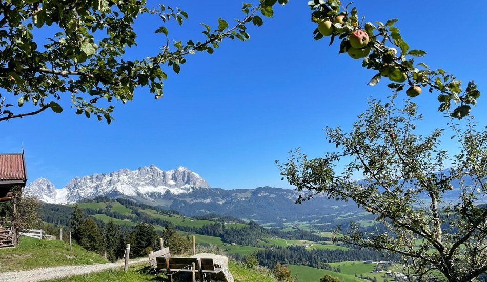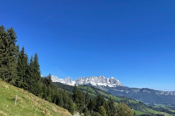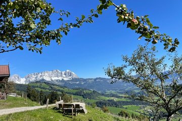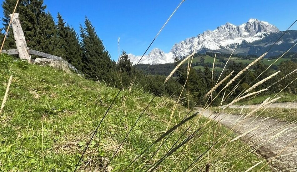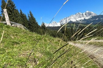 The views of the Kitzbüheler Horn are a real feast for the eyes right from the very beginning of this hike, which starts from the hiking inforrnation point. The route follows the ski slope in Reith, past the Veitl chapel to the Wirtsalm and Scharlwandalm mountain huts. lt then passes the reservoir on the Astberg and continues to what is probably the most popular viewpoint in the region: the Hollenauer Kreuz, where the Wilde Kaiser mountain range feels close enough to touch. The route down leads towards Reith via Wimmau and Zimmerau . The Zimmerau farmstead also has a farm shop where you can buy mountain cheese from the Hochwildalm. Stunning panoramic views of Kitzbühel 's Südberge mountains accompany you for the last few metres of the hike back to the starting point. Our tip: don't forget your Swarovski binoculars because this hike is a unique expcrience.