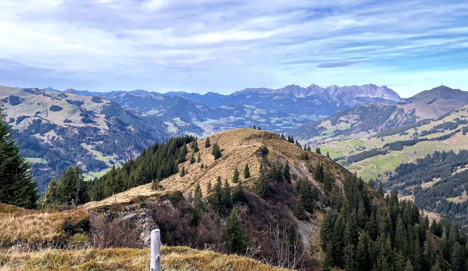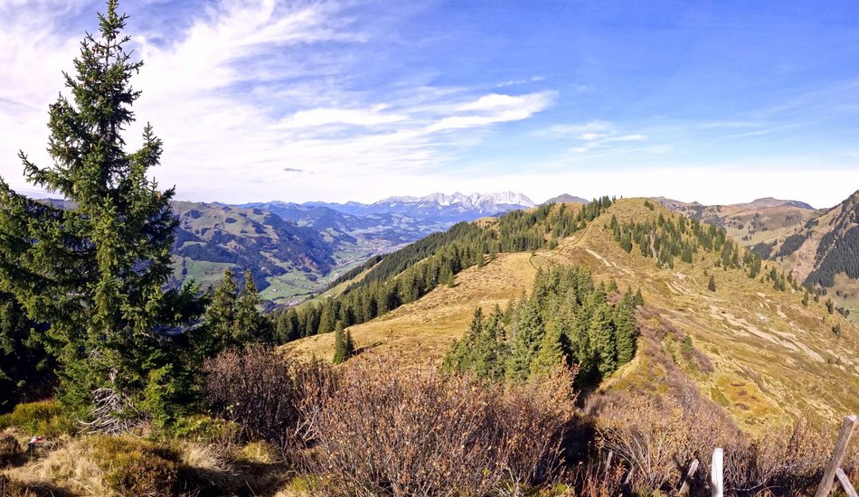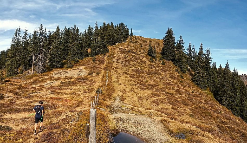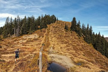 Cross Saalkogel with stunning views towards Kitzbüheler Horn, with wonderful views all year-round. At the ridge, follow the signs to "Laubkogel." The trail runs along the ridge and is a joy to run. Descend from Laubkogel towards "Bochumer Hütte/Kelchalm," a great spot for a rest. From there, continue on a forest road towards "Exenbergalm" and further towards "Obernberg" until reaching Oberaurach. Return to the starting point by retracing the path from Hallerwirt. The loop can be shortened by starting directly from Hallerwirt.