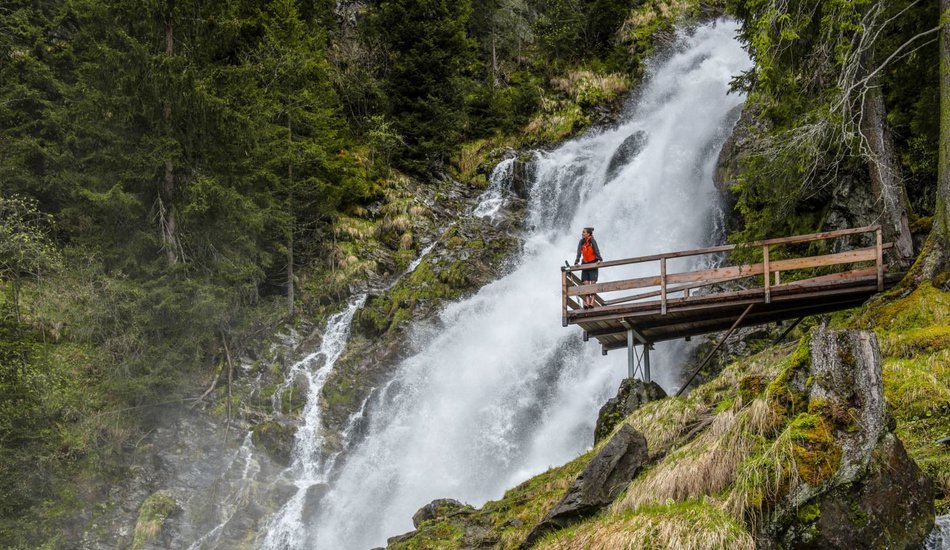 The tour to Sintersbach waterfall starts from Schradlern car park. Along the path and the scenic valley you can literally feel the force of the water. The hike to the impressive natural jewel - where the cool alpine waters drop more than 85 m into the bowls, takes about an hour and then the route continues to the Jochberger Wildalm mountain hut. After a little refreshment, the hike leads through alpine meadows and along the Drachensteig trail back to the starting point.