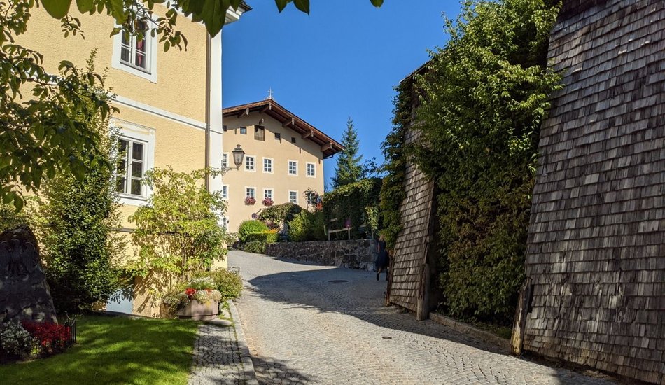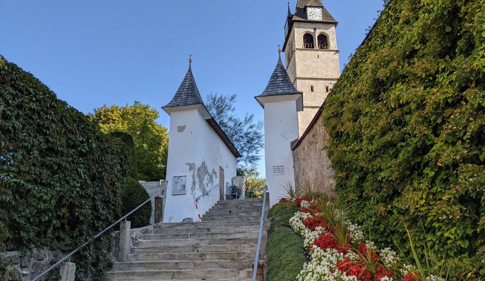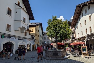 The tour of Kitzbühel's historic town centre starts at the hiking information point. lt is, a circular walk that first leads through Legends Park - Kurpark towards the Hahnenkammbahn gondola and then on to the city park. From there, it continues through the "Jochberger Tor" old town gate, through the picturesque Vorderstadt to the St, Andreas Parish Church. Finally, it leads through the Jenewein Passage in the Kitzbühel Hinterstadt with the colourful row of houses and back to the starting point.