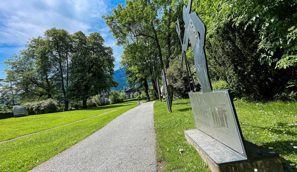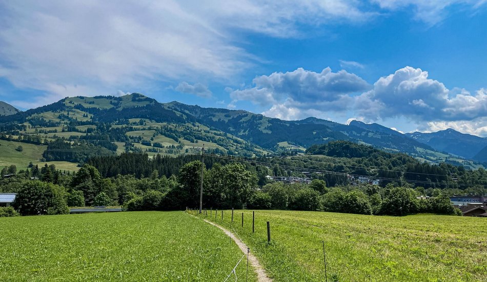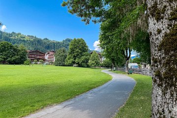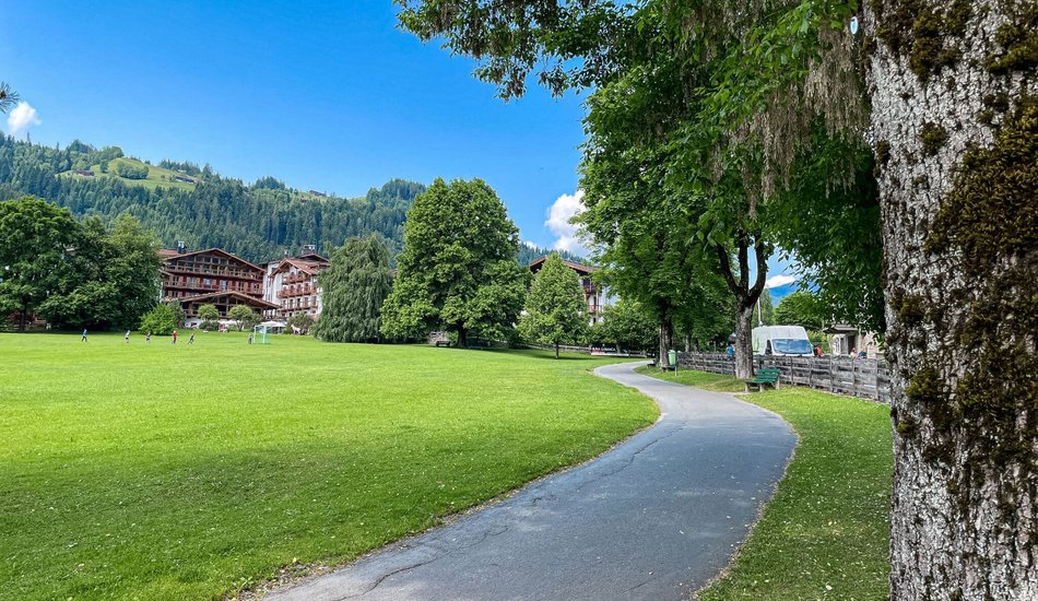 Starting at the Pfarrau parking lot in Kitzbühel, the city trail leads you towards the city center, reaching Legends Park behind the Aquarena. From there, follow the railway tracks towards Hahnenkamm Station. At the railway crossing, cross the tracks and continue along the parking lot, following the signs southwards onto Malernweg. Follow Malernweg to the Ehrenbachgasse junction, then turn into Ehrenbachgasse, heading towards the railway underpass. Turn right onto the narrow path and follow the Kitzbüheler Ache. Cross Jochberger Straße and continue along the Ache until it merges into Traunsteiner Weg. Turn right, go through the underpass, then immediately left. Follow the railway to Hornkreuzung, cross the road towards the city center on Hornweg, turn into Gänsbachgasse, and at Kirchplatz, turn right. Finally, follow Pfarrau Weg back to the starting point. Enjoy the scenic and varied terrain of Kitzbühel!