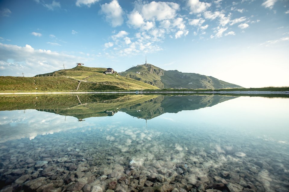 Der Karstweg ist eine leichte Runde auf dem Kitzbüheler Horn, die durch eine wunderschöne Landschaft mit Ausblicken auf die gesamte Kitzbüheler Region führt. Die Route startet am Alpenhaus, der Bergstation der Hornbahn II, und führt bergauf und bergab entlang des Rands der Mulde hinüber zum geologischen Highlight, dem Karst, der sich über Jahrtausende hinweg gebildet hat.