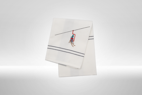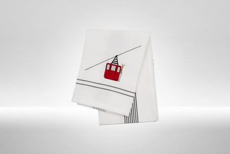 Das hochwertige Geschirrtuch mit dem liebevoll gestalteten Gondel & Skilift Motiv stammt aus der kreativen Werkstatt von Barbara Schmidt, bekannt für ihre detailreichen Zeichnungen mit Tiroler Charme.