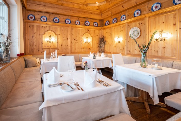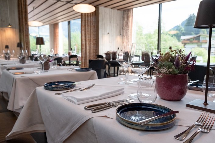 Das Restaurant im Hotel Kitzhof verfolgt eine klare Philosophie: Hohe Qualität und die Verbindung von traditioneller Küche mit internationalen Einflüssen.