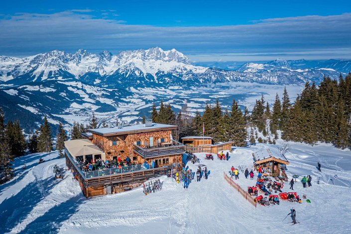 Genießen Sie eine atemberaubende Aussicht am Kitzbüheler Horn. Das Gipfelhaus erreichen Sie mit der bequem mit der Hornbahn I und der Hongipfelbahn. Genießen Sie gutbürgerliche und traditionelle Speisen auf 1.996 Meter.