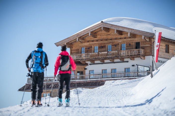 Die gemütliche Hochwildalm (1.557 m) liegt mitten in den Kitzbüheler Alpen am Fuße des bekannten Bischofs (2.127 m). Alle Speisen werden frisch zubereitet, die Zutaten stammen hauptsächlich aus regionaler Landwirtschaft. Brot und Kuchen werden selbst im holzbeheizten Backofen in der Hütte gebacken. Wir bieten eine abwechslungsreiche Speisekarte, die auch vegane Alternativen beinhaltet. Bei tierischen Produkten achten wir besonders auf Herkunft und Bio-Qualität.
