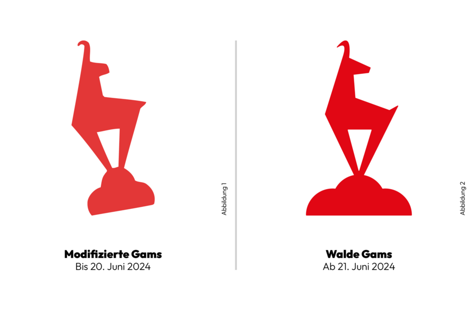 Mit dem neuen Schriftzug machen wir einen großen Schritt in die Zukunft. Mit dem Erwerb der umfassenden Rechte vom Urheber, führen wir die Gams - 50 Jahre nach ihrer Bearbeitung (Abbildung 1) - zu den Ursprüngen Waldes zurück (Abbildung 2).