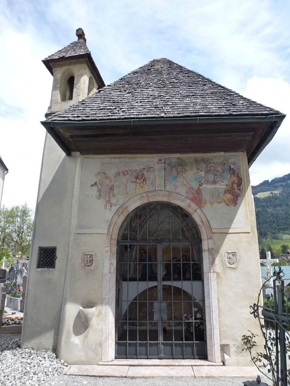 Sie besteht aus einer viereckigen Totenleuchte in Form einer Wegsäule, in die man früher das Licht für die Toten stellte. In ihrer heutigen Form wurde sie um 1450 erbaut, die Fresken stammen aus der zweiten Hälfte des 16. Jahrhunderts.