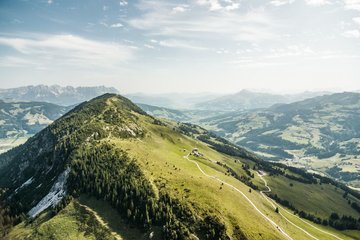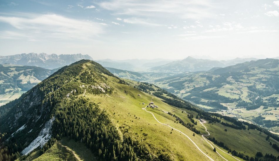 Auf diesem ein kurzes Stück hinüber zur Bergstation und dem Gasthaus Gaisberg Alm (1.289 m; 1 h 15 min ab dem Gaisberg). Nun mit dem Sessellift hinab nach Kirchberg in Tirol (bitte beachten Sie die Öffnungs- & Betriebszeiten der Bergbahnen!).