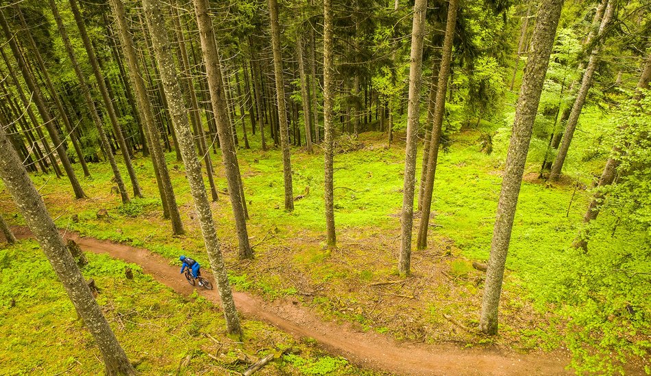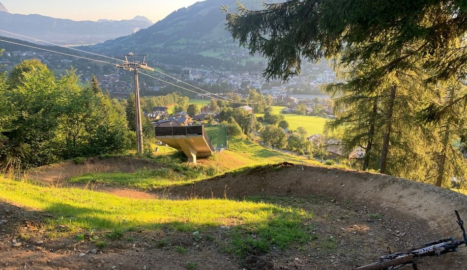 Der Flow-Trail startet bei der Bergstation der Fleckalmbahn und führt über den Hahnenkamm (mit seiner berühmten Rennstrecke der „Streif“) hinab ins Tal. Der blaue Flow-Trail am Hahnenkamm ist der längste seiner Art in Tirol. Die Strecke ist familientauglich gehalten, mit einfacheren Schlüsselstellen und verspielten Elementen. Durch eine geschickte Trassenführung kommt der Trail ohne viele künstliche Elemente aus. Naturbelassene Passagen, Wiesenkurven, kleine Wellen und Absprünge sowie natürliche Hindernisse bieten Abwechslung und Action für die ganze Familie. Zum Bremsen regt nur ab und zu der schöne Ausblick nach Kitzbühel an.