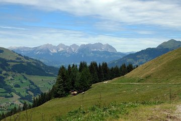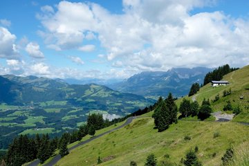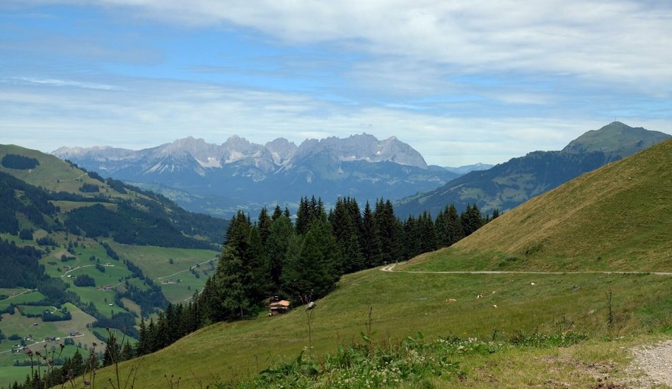 The starting point is a junction of the Oberhausenweg municipal road at "Taxen" at the foot of the Schützenkogel. From here we head uphill along the Ostweg, a gravelled forest path. The trail winds past sections of forest with rushing stream falls and alpine meadows. At two junctions, continue to follow the signposted trail of route number 212. Once the trail has passed the Taxeralm and Künstlalm and the destination of the Waldhausalm has been reached, all the effort is rewarded and we can enjoy a breathtaking view of the Kitzbühel mountains and down to the town of Kitzbühel in the valley with its holiday villages of Aurach and Jochberg.