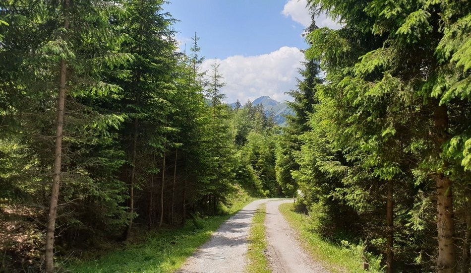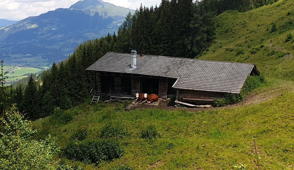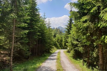 Beim "Hanslerhof" von der Gemeindestraße Oberhausenweg abzweigend durch schöne Wälder zur Hansler- und weiter zur Burgstallalm.