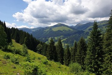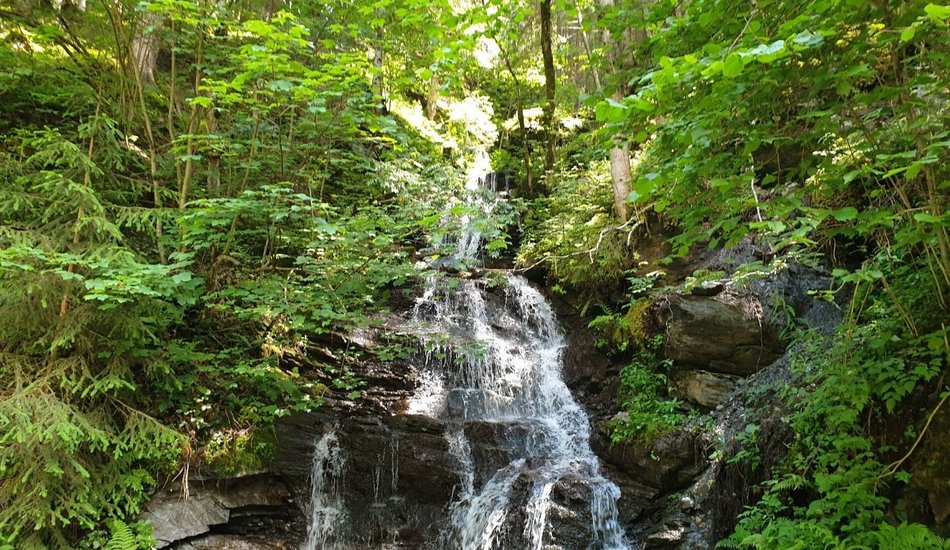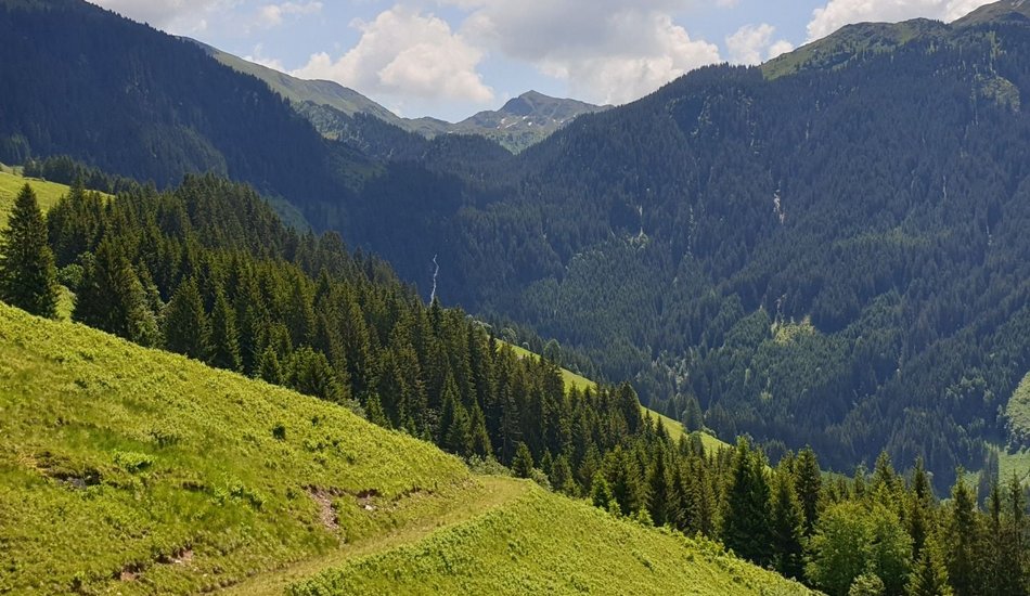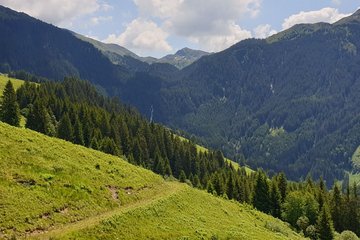 Beim "Hanslerhof" von der Gemeindestraße Oberhausenweg abzweigend durch schöne Wälder zur Hansler- und weiter zur Burgstallalm. Von dort herrlicher Ausblick auf den Sintersbach Wasserfall, die Hohen Tauern, Teufelssprung und Kuhkaser. Die Gesamtlänge dieser Route (inkl. Verbindung zur Route 212) bertägt ca. 5,5 km.