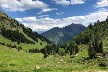 Startpunkt dieser ausgehnten, schweren Tour ist beim Infobüro in Kössen. Bis zum Kreisverkehr fahren, die erste Abzweigung nehmen und der Hüttfeldstraße bis zum Ortsteil Blaik folgen. Die Großache queren, links abbiegen und der Straße bis zur nächsten Brücke über die Großache folgen. Durch den Ortsteil Kaltenbach und danach entlang der Hauptstraße fahren. Der Beschilderung folgen bis links die Abzweigung auf den Forstweg folgt. Die Strecke verläuft nun zum Teil mäßig ansteigend durch reizvolles Waldgegiet. Sobald das erste Wiesenstück nach dem Wald erreicht ist, besteht die Möglilchkeit zur Klausenbergalm abzubiegen. Oder der Biker bewältigt die nächsten 6 km, welche durch zum Teil flach bis mäßig ansteigendes Gelände in Schlangenlinien durch den Wald bis zur Kreuzangeralm führen. Richtung Norden führt die Route dann stark ansteigend durch Almweiden noch knapp 5 km auf die Eggenalm bzw. dem Straubingerhaus.