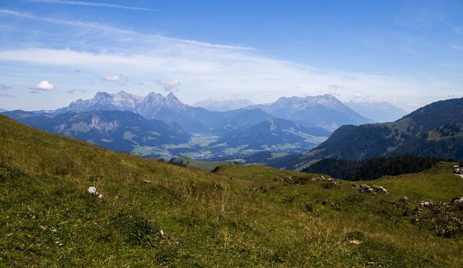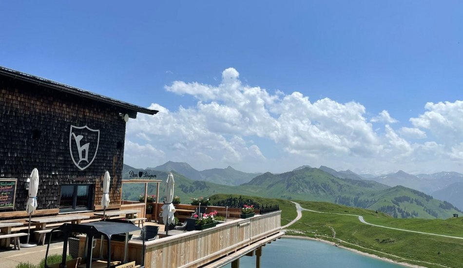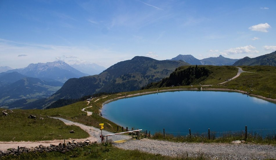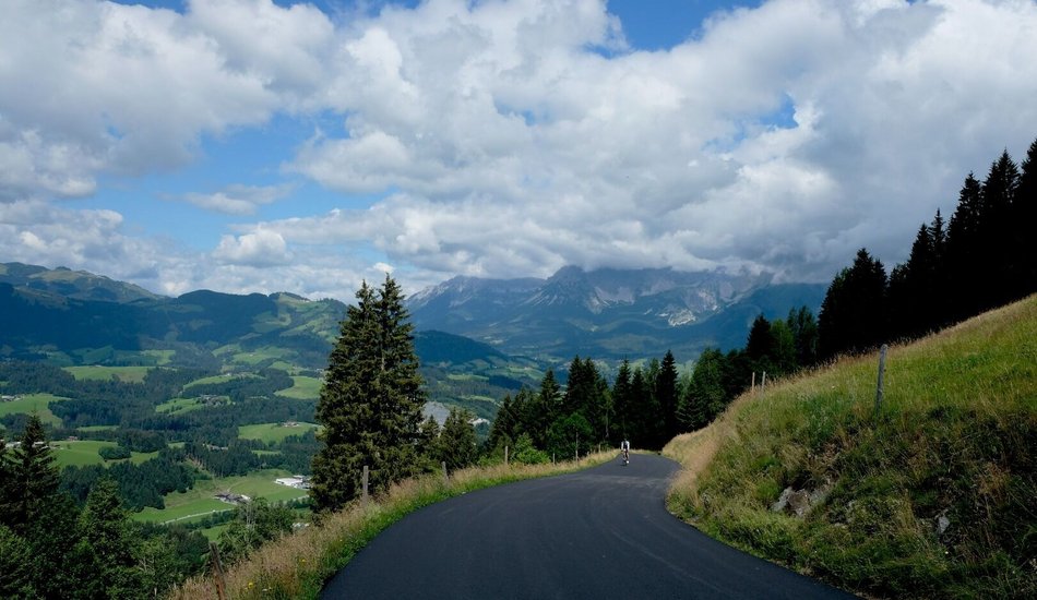 Die Strecke mit einer Gesamtlänge von 9,35 km bei 980 Höhenmetern bergauf bietet eine sportliche Herausforderung, die mit einem spektakulären Blick weit über die Gipfel und Täler der Kitzbüheler Region glänzt.