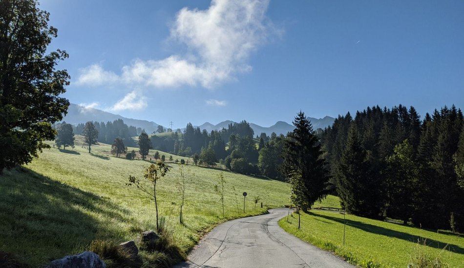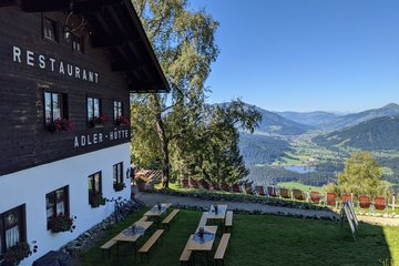 Vom Ausgangspunkt Talstation Hornbahn gehen Sie auf der Zufahrtsstraße Richtung Hagstein. Beim Bauernhof Grünberg zweigen Sie auf einen steilen Forstweg RichtungGasthof Hagstein, Adlerhütte, Alpengasthaus ab.
