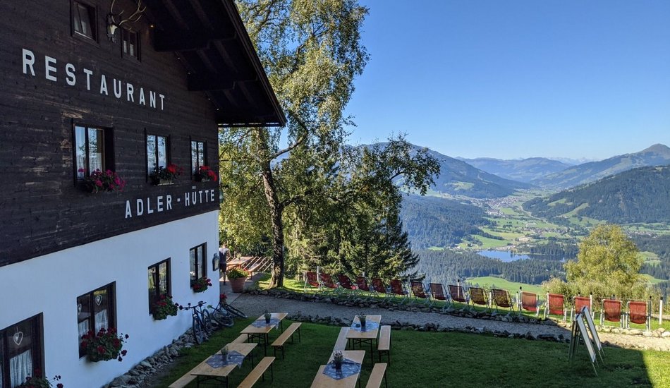 Die Route führt durch den Wald in mehreren Serpentinen aufwärts. Weiter oben erreichen Sie über Almwiesen die Adlerhütte (2 h ab Kitzbühel) und die nahe gelegene Mittelstation der Hornbahn. Hinter der Adlerhütte weiter auf einem Steig, der bald in einen Forstweg übergeht. Von hier an orientieren Sie sich immer an den Schildern zum Kitzbüheler Horn.