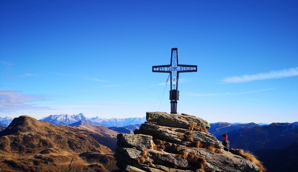 Start dieser Wanderung ist bei den Kelchalm Ruinen. Von dort geht es in den Talschluss des Kelchalmgrabens, vorbei an Nieder- und Oberkaseralm hinauf zum Tor. Es folgt der teils versicherte Aufstieg zum Tristkogel. Dann der luftige Grat (Trittsicherheit, Schwindelfreiheit) Richtung Saaljoch. Dort angenehm bergauf zum Saalkogel und nur wenige Min. gemütlich zum Rauber. Über Hahnenkampl und Laubkogel wieder talwärts – mit fünf herrlichen Gipfelbesteigungen „in der Tasche“. An der Kelchalm wartet dann die verdiente Belohnung in Form heimischer Schmankerln.