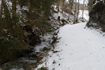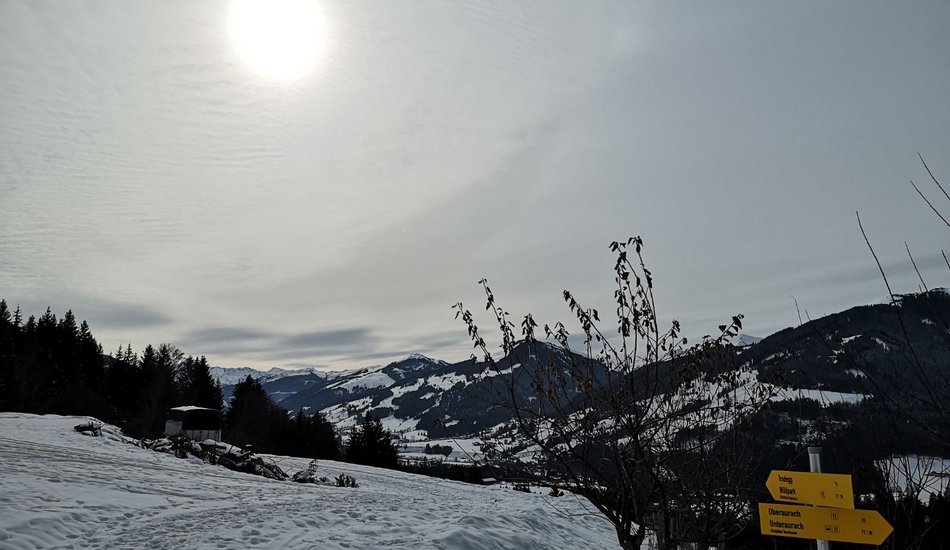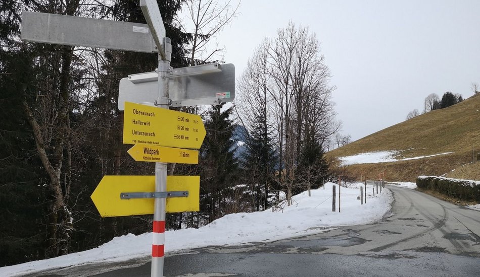 Vom Info-Wanderplatz wandern wir entlang der Ache, angekommen an der Weggabelung halten wir uns rechts und wandern in Richtung Oberaurach. Zwischen Kirche und Hallerwirt wandern wir gerade aus. Wir folgen den Wegweiser in Richtung Tonstock/Haselwand/Wildpark.Immer geradeaus kommen wir an einer weiteren Weggabelung an, hier führt uns der Weg durch einen wunderschönen romantischen Waldweg hindurch.Wem dieser Weg zu steil oder je nach Verhältnisse nicht sicher ist, kann auch den Straßenverlauf folgen und diesen Abschnitt umgehen. Am Wegende folgen sie den in Richtung Tonstock/Wildpark.Nach kurzer Zeit kommen wir am höchsten Punkt an, und folgen den Weg wieder in Richtung Tradegg/Wildpark.Jetzt geht es nur noch Berg ab, mit wunderschönem Blick auf die Auracher und Jochberger Bergwelt folgen wir den Weg bis zu unserem nächsten Wegweiser in Richtung Tonstock/Oberaurach/Hallerwirt der uns zu unserem Ausgangspunkt hinunter führt.