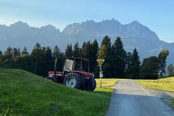 Starten Sie beim malerischen Schwarzsee und machen Sie sich auf den Weg zum Steuerberg, um Ihre ersten atemberaubenden Aussichten auf den Wilden Kaiser zu genießen, umrandet von typisch tirolerischen Bauernhäusern. Ein schneller Abstieg gefolgt von einem flotten zweiminütigen Aufstieg führt Sie in das malerische Dorf Reith bei Kitzbühel. Der anspruchsvollste Anstieg der Tour belohnt Sie mit den beeindruckenden Panoramen des Rettenbergs. Legen Sie eine wohlverdiente Pause für einen Kaffee oder eine Erfrischung im Bichlhof ein, bekannt für seine außergewöhnliche Lage zwischen dem Kitzbüheler Horn und dem Wilden Kaiser. Beenden Sie Ihr Abenteuer mit der Rückfahrt nach Kitzbühel über den historischen Römerweg.