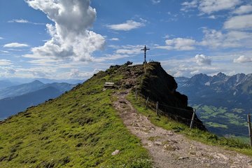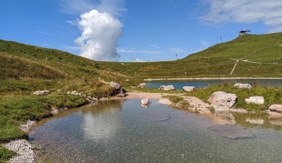 Nach dem Alpenblumengarten geht man in Richtung Hornköpfl. Machen Sie einen Abstecher zur Hornköpflhütte mit Panorama-Blick zu den Loferer Steinbergen! Unterhalb der Hütte befindet sich der Hornköpflsee mit Kneippbereich.