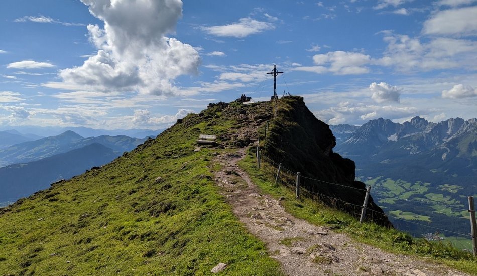 Mit der Hornbahn I und der Horn-Gipfelbahn von Kitzbühel hinauf zur Bergstation. In einer kurzen Wanderung von ca. 15 Minuten erreicht man dann den Eingang des Alpenblumengartens. Dort kann man die Flora der alpinen Bergwelt Tirols hautnah erleben, denn Biologen bieten dort kostenlose geführte Wanderungen an.