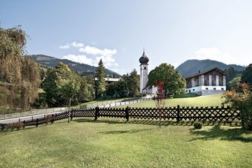 :: Zurück bei der Hütte, schwingen wir uns wieder auf unsere Mountain E-Bikes – und nehmen das beschauliche Urlaubsdorf Aurach ins Visier. Mitten im Ort erwartet uns der Hallerwirt, ein ursprünglicher Bauernhof mit Restaurant, wo wir uns die typische Tiroler Küche munden lassen.