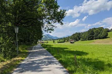 :: Kurz vor dem bekannten Wildpark steuern wir über einen Schotterweg auf die Hochwildalm zu. Auf der