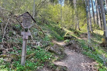 Vom Zentrum kommend geht es über die Hahnenkammstrasse und den Bergwerksweg zur Kitzbüheler Siedlungsgrenze. Am sogenannten „Dritten Schattberg“ beginnt der Kreuzweg, der in Richtung Steinbruch führt. Das Ziel des Kreuzweges ist die Einsiedeleikapelle, die 1735 vom Kitzbüheler Hutmacher Franz Stitz gestiftet wurde, und seither als Wallfahrtsort aufgesucht wird. Der Weg führt über die gleiche Strecke zurück ins Tal. Wer aber genug Elan für einen längeren Marsch hat, kann weiter zur Seidlalm (Einkehrmöglichkeit) wandern, wo sich ein idyllischer Bergsee befindet. ACHTUNG: Bitte folgen sie immer den rot-weiß-roten Markierungen. Bei Station 4 führt der Weg rechts weiter, nach Station 8 vor der Forststraße links. Viel Spaß bei Ihrer Wanderung!