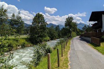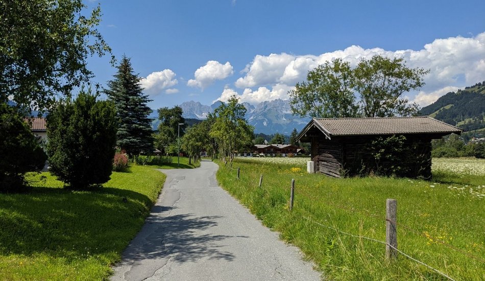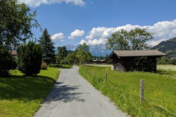 Wanderung zu einer südlich gelegenen Anhöhe von Kitzbühel mit alten Bauernhöfen und herrlicher Sicht auf das Wilde Kaiser Gebirge. Beim Tennisstadion (Parkmöglichkeit) queren wir die Hauptstrasse, über die Achenbrücke und gelangen entlang der Ache bis zum Hof Einfang wo wir auf den Wegweiser stoßen, der uns Richtung Malerndörfl über einen schmalen Wiesenweg bis zum Kitzbüheler Ortsteil Malern führt. Von dort aus folgen wir der Beschilderung Richtung Kitzbühel, die uns wieder zum Tennisstadion zurückführt.