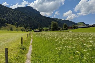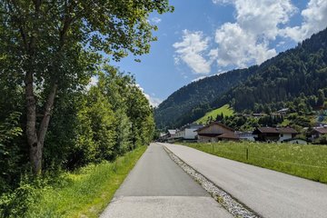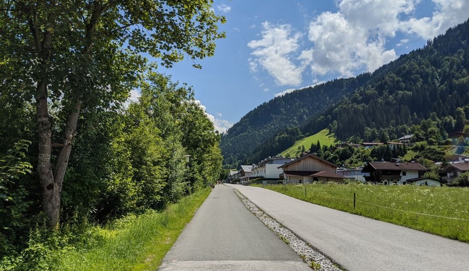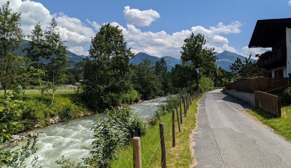 Tennisstadion - Sportplatz Langau - über Brücke Jochberger Ache - Richtung Aurach - Richtung Malerndörfl - über Wiesenweg zum Ortsteil Malern - Kitzbühel - Tennisstadion