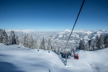 Start ist bei der Talstation der Hahnenkammbahn, wo Sie mit der Gondelbahn zum Hahnenkamm rauffahren (Lifttickets sind direkt an der Bergbahn-Kassa erhältlich). Oben angelangt bietet sich ein traumhafter Blick auf das markante Kitzbüheler Horn und Kitzbühels Südberge. Von der Bergstation, geht es gleich geradeaus in Richtung Märchenwald Zauberteppich. In der Nähe der Talstation des Zauberteppichs kreuzen Sie die Skipiste und wandern auf einem gewalzten Wanderweg links neben der Skipiste in Richtung Hahnenkammstüberl. Auf diesem Weg bietet sich ein toller Blick auf den Steinbergkogel und die Ehrenbachhöhe. Kurz vor dem Hahnenkammstüberl wandern Sie am Pistenrand entlang vorbei am Berghaus Tyrol zur St. Bernhard Kapelle. Ein perfekter Platz, um kurz innezuhalten und die Aussicht auf das Brixental, das schroffe Masssiv des Kaisergebirges, ins Leukental bis hin zu den Chiemgauer Alpen zu genießen. Links neben der Kapelle führt ein idyllischer Wanderweg abseits der Skipiste in Richtung des genannten „Waldehang“ zurück zum Ausgangspunkt dieser Winterwanderung. In der Nähe der Talstation des Zauberteppich Märchenwald kreuzen Sie wieder die Skipiste in Richtung Bergstation der Hahnenkammbahn. Bevor es mit der Gondelbahn zurück ins Tal geht, empfiehlt sich ein kurzer Abstecher zur Panoramaterrasse hinter der Bergstation, wo Sie zum krönenden Abschluss mit einem eindrucksvollen Panoramablick belohnt werden. Tipp: Werfen Sie einen imposanten Blick auf die berühmt berüchtigte Mausefalle und besuchen Sie das Starthaus, das sich nur wenige Meter links oberhalb des Ausstiegs vom Zauberteppich Märchenwald befindet.