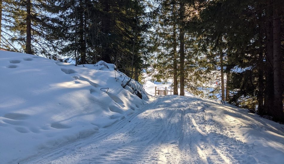 Präparierte Winterwanderroute: Abseits der markierten, gesicherten Winterwanderrouten befinden Sie sich im freiem Skiraum / Gelände. Das Wandern auf der Piste ist untersagt! Benutzung der Winterwanderrouten auf eigene Gefahr!