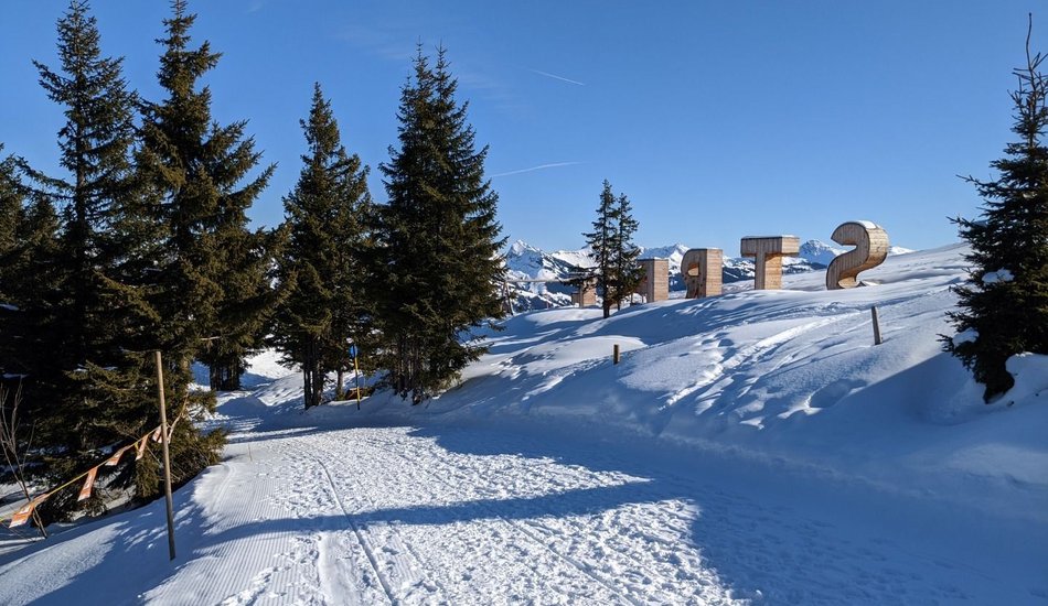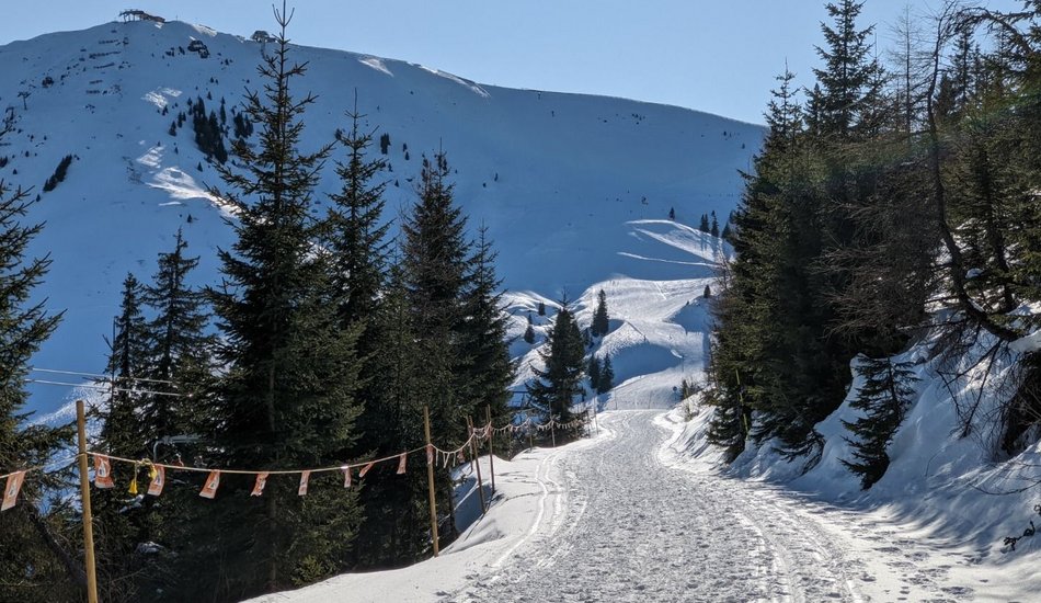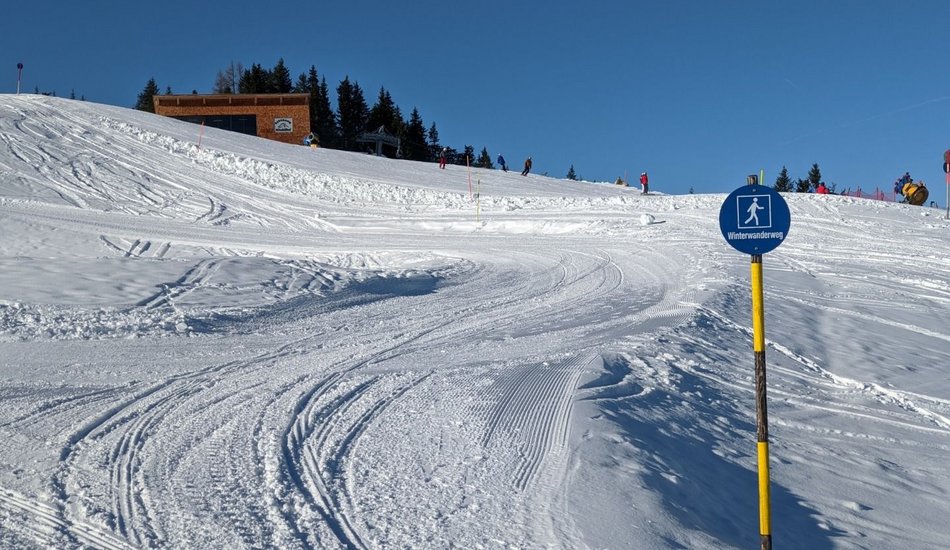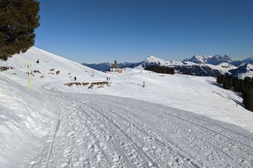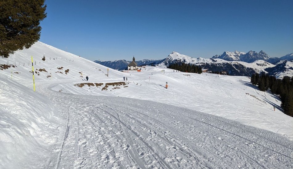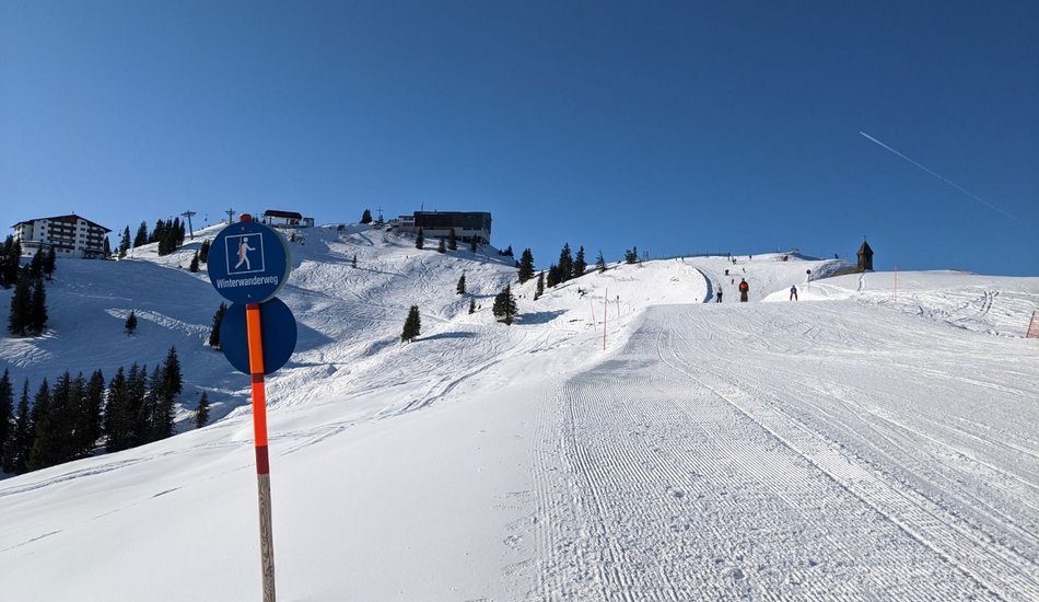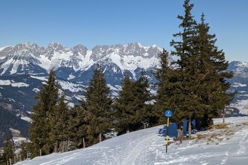Sie starten bei der Talstation Hahnenkammbahn, wo es mit der Gondel zum berühmten Hahnenkamm hinauf geht (Lifttickets sind direkt an der Bergbahn-Kassa erhältlich). Oben angekommen, bietet sich ein großartiger Ausblick auf das unverkennbare Kitzbüheler Horn und die sanften Kitzbüheler Südberge. Ausgangspunkt der Wanderung ist die Bergstation, von der es gleich geradeaus in Richtung Märchenwald Zauberteppich geht. Beim Einstieg des Zauberteppichs (nicht einsteigen) kreuzen Sie die Skipiste und wandern auf einem gewalzten Wanderweg links neben der Skipiste in Richtung Hahnenkammstüberl. Auf diesem Weg bietet sich ein toller Blick auf den Steinbergkogel und die Ehrenbachhöhe. Kurz vor dem Hahnenkammstüberl wandern Sie am Pistenrand entlang vorbei am Berghaus Tyrol zur St. Bernhard Kapelle. Halten Sie sich links und kreuzen Sie im flachen Teil die Piste Nr. 19 „Kapellenabfahrt“. Der Winterwanderweg führt Sie weiter in Richtung Hotel Ehrenbachhöhe, wo der Pfad unterhalb des Hotels abseits von Skipisten durch eine wunderschöne Winterlandschaft in Richtung Streiteckmulde verläuft. Kurz vor dem Kompetenzzentrum Streiteck kreuzen Sie erneut die Skipiste. Der Weg führt direkt am Komeptenzzentrum vorbei, wo Sie den Wegweisern in Richtung Hochbrunn folgen. Nach ca. 5 Minuten erreichen Sie den Gasthof Hochbrunn, der dazu einlädt, bei einer kleinen Stärkung die wunderbare Aussicht ins Brixental zu genießen. Zurück geht´s auf demselben Weg. Unterhalb der Terrasse des Sonnenrastliftes kommen Sie zu einer Gabelung, wo Sie den Wegweisern in Richtung Sonnenrastalm folgen. Nun führt der Weg oberhalb des Hotels Ehrenbachhöhe vorbei, bevor Sie nach Kreuzen der Piste Nr. 19 „Kapellenabfahrt“ im flachen Teil wieder zur St. Bernhard Kapelle kommen. Ein perfekter Platz, um kurz innezuhalten und die Aussicht auf das Brixental, das schroffe Masssiv des Kaisergebirges, ins Leukental bis hin zu den Chiemgauer Alpen zu genießen. Links neben der Kapelle führt ein idyllischer Wanderweg abseits der Skipiste zum so genannten „Waldehang“ zurück in Richtung Ausgangspunkt dieser Winterwanderung. Beim Zauberteppich Märchenwald kreuzen Sie wieder die Skipiste in Richtung Bergstation der Hahnenkammbahn. Bevor es mit der Gondelbahn zurück ins Tal geht, empfiehlt sich ein kurzer Abstecher zur Panoramaterrasse hinter der Bergstation, wo Sie zum krönenden Abschluss mit einem eindrucksvollen Panoramablick belohnt werden.