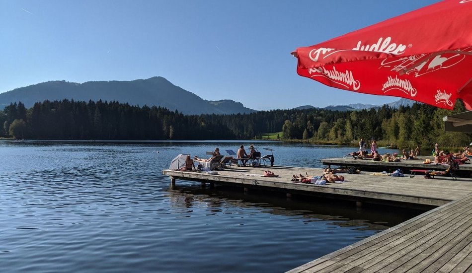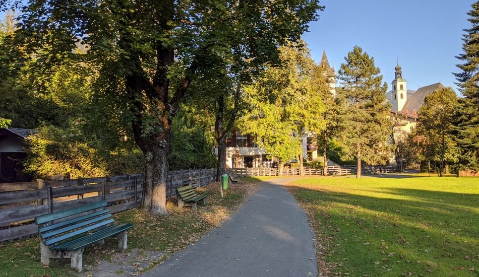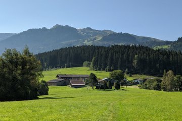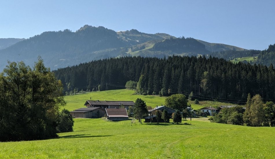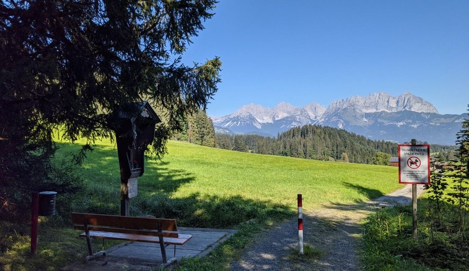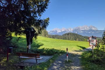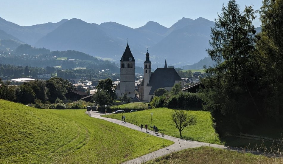 Wir starten unsere Wanderung beim gebührenfreien Parkplatz Pfarrau. Stadteinwärts folgen wir der Beschilderung bis zum Pfarrhof (nähe Kirche), wir halten uns in Richtung Lebenberg. Über zwei kleine Steigungen erreichen wir das Hotel Schloß Lebenberg. Auf diesem Weg dorthin sollte man sich öfters die Zeit nehmen, kurz stehen zu bleiben und seinen Blick Richtung Süden schweifen lassen – Kitzbühel und seine Südberge verzaubern den Wanderer. Weiter führt uns der Wanderweg Richtung Steuerberg über leicht hügeliges Gelände. Am Steuerberg kann man sich im Gasthof Steuerberg kulinarisch verwöhnen lassen – der große Gastgarten lädt ein. Um zum Ausgangspunkt wieder zurück zu gelangen folgen wir der Beschilderung Richtung Schwarzsee, Alpenhotel, Kitzbühel Pfarrau Parkplatz.