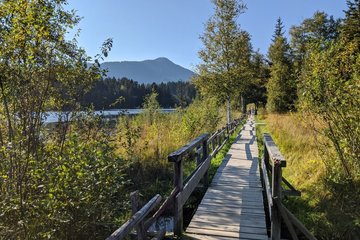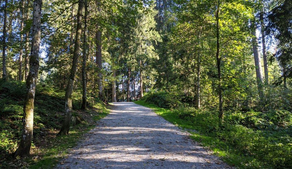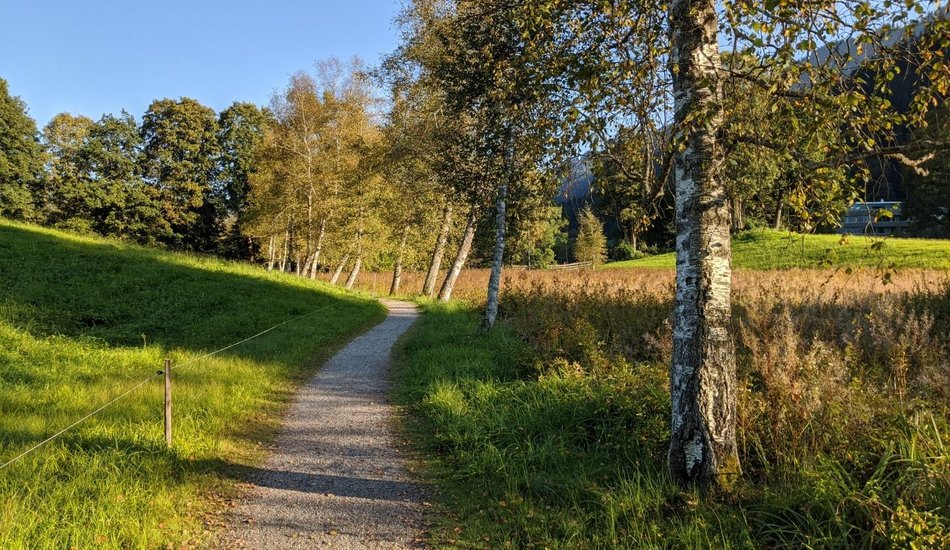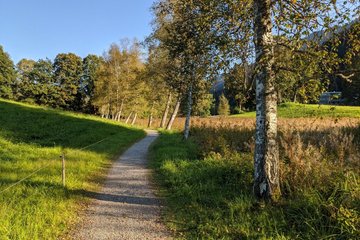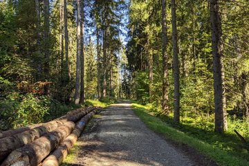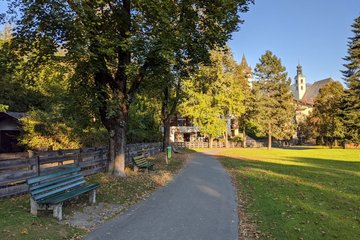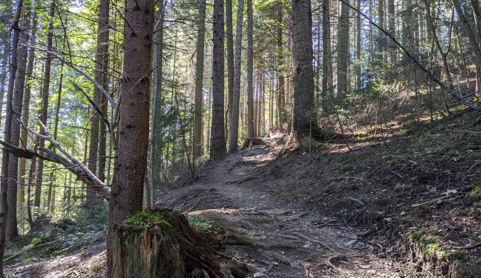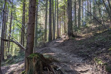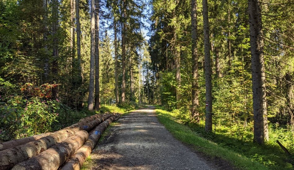 Vom Parkplatz Pfarrau wandern wir über den Lebenberg und den Steuerberg und folgen dort der Beschilderung Schwarzsee, Alpenhotel und Pfarrau Parkplatz.