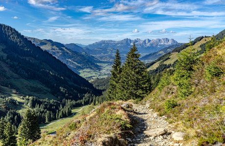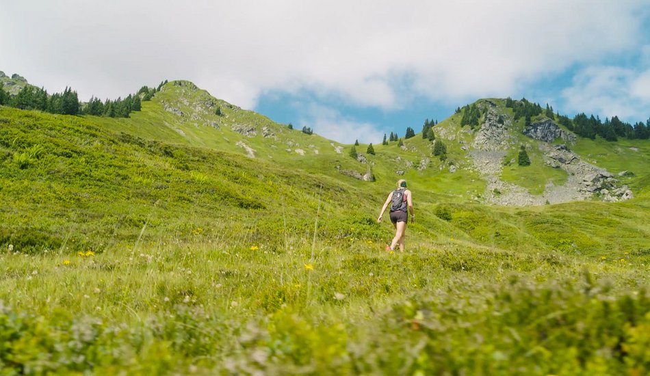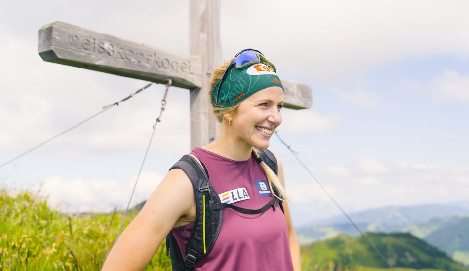 Die Tour auf den Weißkopfkogel startet mit Lisa Hauser, der erfolgreichsten österreichischen Biathletin, beim Parkplatz Brander Reibe. Durch den Wildalmgraben führt der Forstweg zur bewirtschafteten Hochwildalm Aurach. Gestärkt mit regionalen Köstlichkeiten geht es weiter über das sanfte Gelände der Kitzbüheler Grasberge hinauf zum Gipfel des Weißkopfkogels auf 1.970 Höhenmeter.