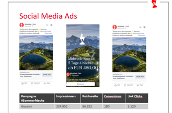 Ja, auf kitzbuehel.com sowie im Zuge der Social Media & Google Ads & Presse-Kampagnen Österreichweit und international. Pro Saison und Angebot machen wir mindestend 4 Kampagnen und erstellen eigene Landing-Pages.