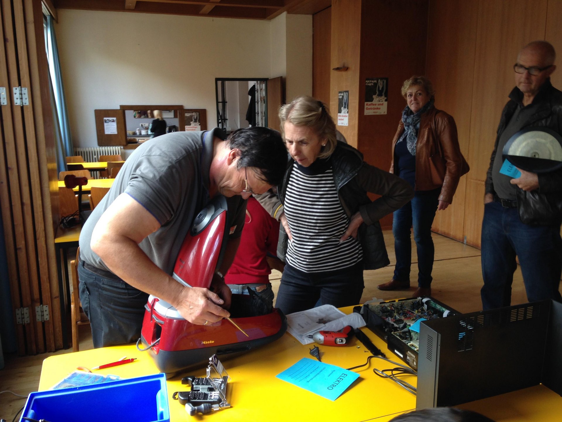 Gut zu wissen: Die Hilfe unserer Expert:innen ist ehrenamtlich. Wir bitten um Verständnis, dass größere Ersatzteile nicht gratis sind. Benötigte Materialien (wie z. B. Fahrradschläuche oder Griffbänder) können jedoch im Fall günstig direkt vor Ort erworben werden, damit alles sofort repariert werden kann.